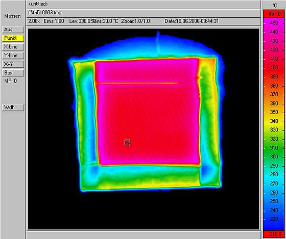 Für dünnwandige Hochtemperaturbauteile aus oxidfaserverstärkter Oxidkeramik wird ein zerstörungsfreies Prüfverfahren entwickelt. Dazu wir der Abkühlvorgang dünnwandiger Proben von 1100 °C mit einer Infrarotthermographiekamera betrachtet. Die Thermogramme sollen Aufschluss über innenliegende Materialfehler (Matrix und Faser) geben. Das Prüfverfahren soll als sogenanntes „Online-Verfahren“ direkt in die Produktionslinie integriert werden, so dass die durchgewärmten Bauteile direkt nach dem Brennen im Ofen geprüft werden können.